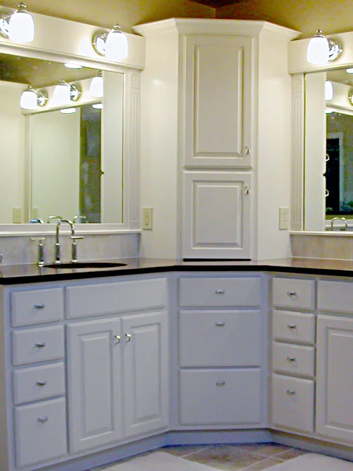 - Beautiful lighting over the two separate sinks provides efficient bathroom lighting